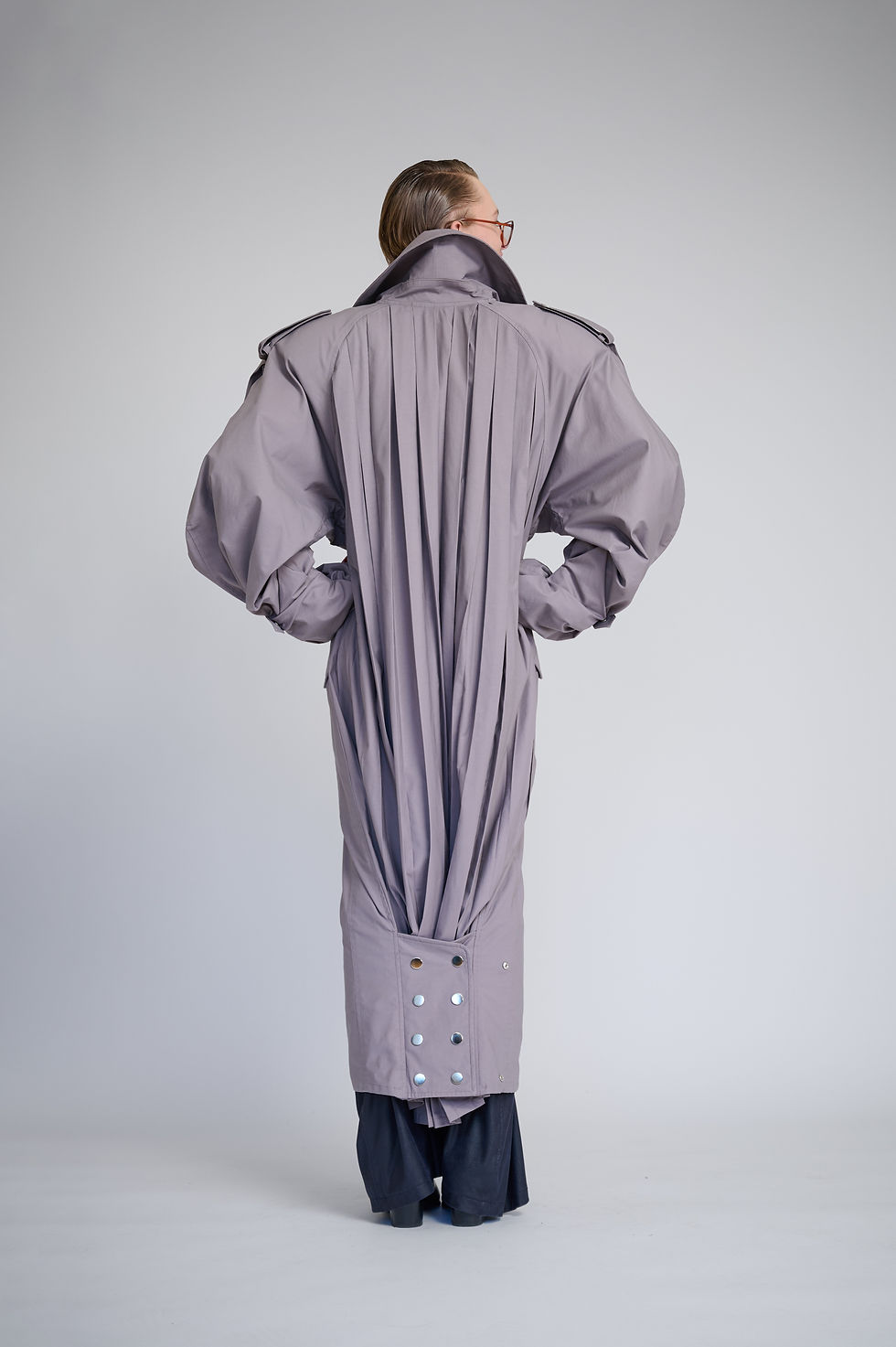 Pleated Cocoon Military Trench with Back Fastening Placket